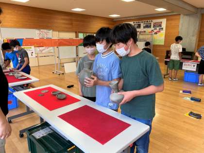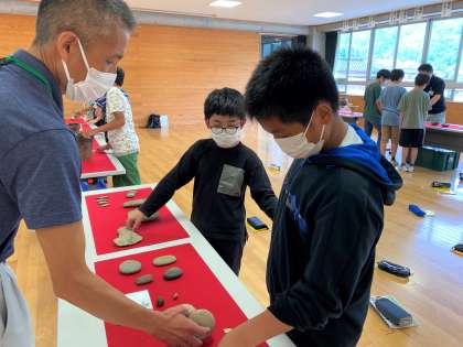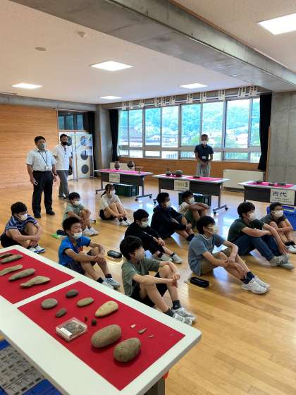 また、それぞれの時代の遺物を実際に手に取りながら、時代による違いや特徴、使い方などについて学びました。子供たちは、本物をさわってみることでその時代に思いをはせていました。