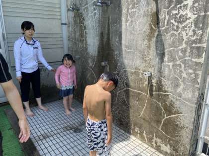 プールの前後は水で体の汚れや塩素を洗い流しました。
