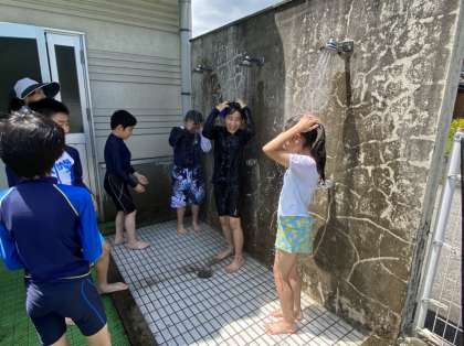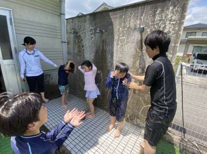 プールの前後は水で体の汚れや塩素を洗い流しました。