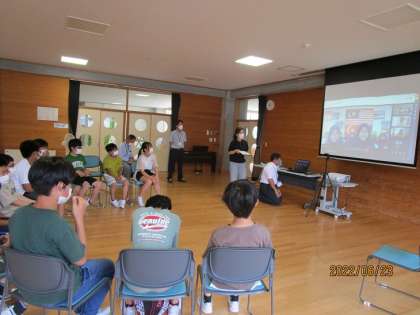 紹介や質問は、通訳していただいたのですが、このような外国の人とやり取りする体験を通じて、「直接コミュニケーションをとれるようになりたいな」という思いをもった子供も多いと思います。外国語学習への意欲につながるといいなと思います。