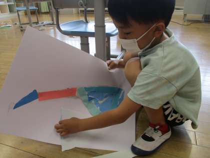 図工の時間に、色紙や新聞紙でちぎって作品をつくりました。