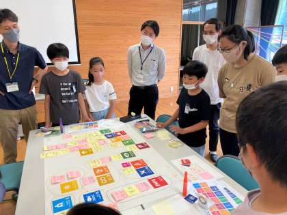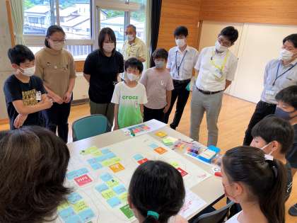 SDGsについておさらいをした後、グループに分かれて、自分のこと、学校でのこと、そして地域のことと、徐々に範囲を広げながらSDGsの視点に沿って「困りごと」「自分たちにできること」の意見を出し合いました。