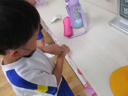 何個分か忘れないように真剣に数えていました。手の大きさによっても何個分かが変わりますね。