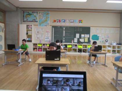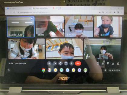 違う教室に行って、ビデオ通話ができるか確認しました。手を振ったり話したりと楽しそうにしていました。