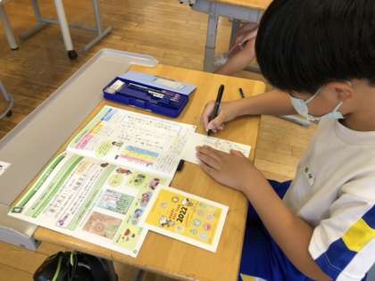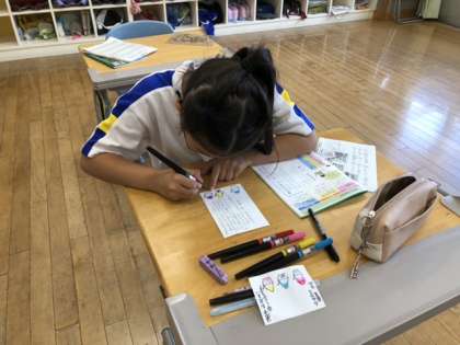 はがきや手紙を書く機会が激減し、自分の住所や郵便番号が分からない子供がたくさんいます。手紙でやり取りする楽しさを体験するとともに、差し出し人の部分を繰り返し書くことで、自分の住所を覚えられるようにしたいものです。
