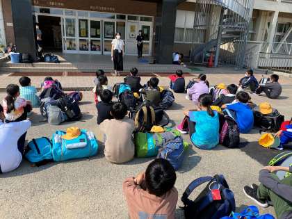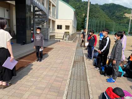 5.6年生が学校へ戻ってきました。バスの中ではみんなすっかり寝ていました。しかし、帰校式では再びシャキッとして最後の式を立派な姿でやり終えました。