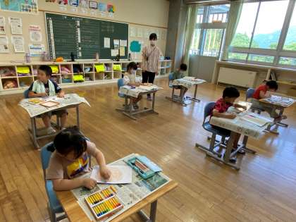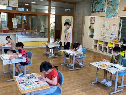 「おおきなかぶ」の登場人物のお面をつくっていました。