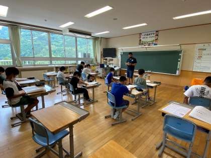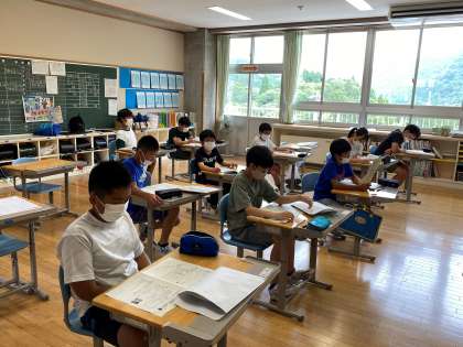 6年生は、夏休みのしおりをみんなで読みながら、夏休みの生活について確認していました。