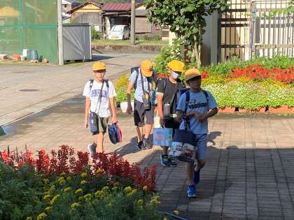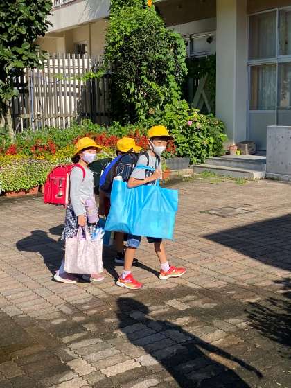 子供たちは夏休み中に取り組んだ作品をたくさんもって登校してきました。