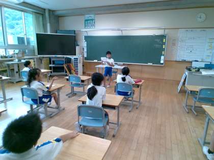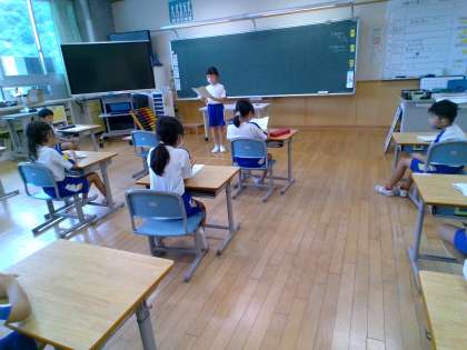 子供1人1人、自分の夏休みの思い出をみんなの前で発表しました。子供達は、楽しい夏休みを送ったことを生き生きとした顔で話していました。