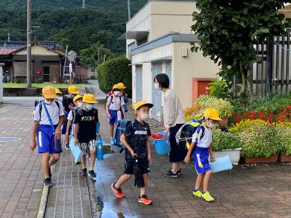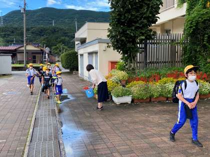熱中症対策をしっかりして、体育大会の練習に取り組みます。子供たちは体育服で登校しています。