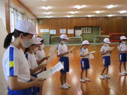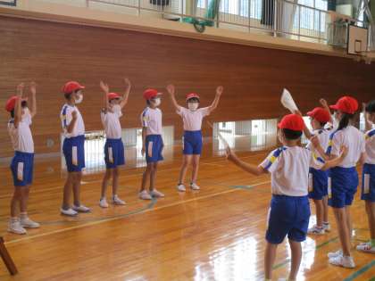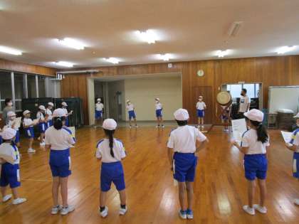 今日から全校応援練習が始まりました。赤団、白団に分かれ、団長、応援団長を中心に応援歌を歌ったり、それに合わせた振り付けをしたりしました。