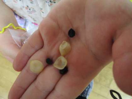 「茶色いつぶはたねだよ!」と知っている子が教えてくれたので、みんなでたねを取ることにしました。