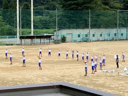 9月8日(木) 昼の応援練習 公開日 2022/09/08 更新日 2022/09/08 碧っ子の姿から 昼タイムに応援の練習をしていました。 2階のベランダから撮りました。両団とも気合いの入った大きな声を出していました。
