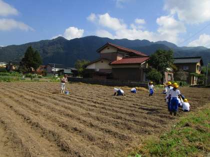 暑い中、これだけ広い畑の3分の2ほどに植え付けることができました。来年の収穫が楽しみです。