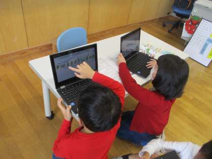 生活科の学習では、夏野菜の収穫が終わりに近づいており、今後、畑をどうしていきたいか話合いました。子供達は、夏野菜たちに感謝を述べながら、秋冬野菜について調べ始めました。タブレットの使い方も4月に比べるととても上達しています。