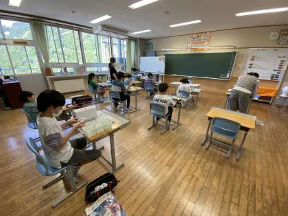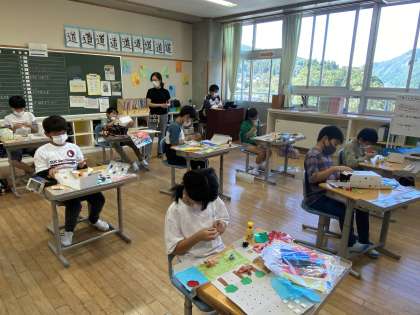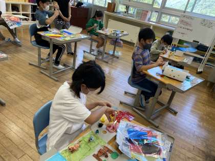 「のぞいてみると」は、箱の小さな穴からのぞいた世界を創作しています。どんなふうに見えるのか、時々試しにのぞきながらつくっていました。