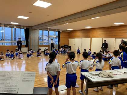 今日の1限は、全校音楽でした。「アンパンマンマーチ」と「竈門炭治郎のうた」を中心に練習しました。