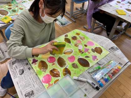 10月5日(水) 3年図工「葉っぱの芸術2」