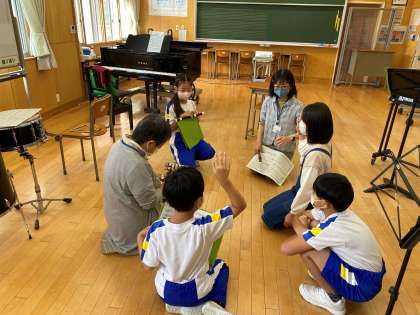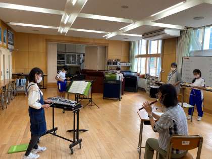 3年生は、合奏の練習をしていました。今日からはじめる曲です。最初なので、まずは全ての楽器をローテーションして全員が一度経験しました。この後、どの楽器を担当するか決めていくようです。仕上がりが楽しみです。