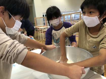 こねる作業は50分ほどだそうです。交代しながら頑張っています。