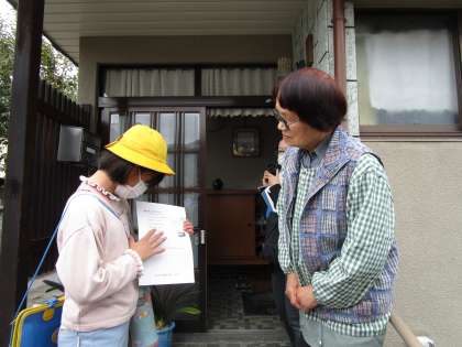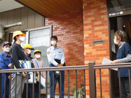 自分たちで作成した防火チェックシートを使い、「コンセントの周りにほこりは溜まっていませんか。」など、火災の未然防止を呼びかけました。