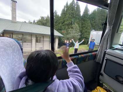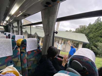 バスに乗り込むと、子どもの村の職員の方々がお見送りをしてくださいました。