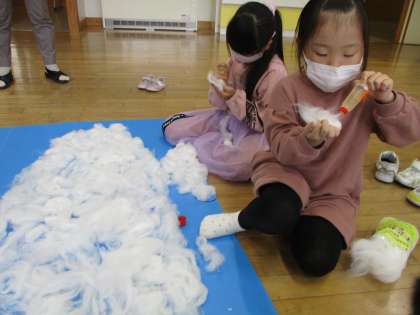 「これなら乗れるかな」「ふわふわで美味しそうだね」と、楽しく想像しながら作ることができました。