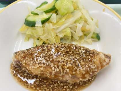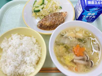 ふくらぎは皮がパリパリ、あわせ和えはシャキシャキ、五目みそ汁は具沢山でした。肌寒い季節ですが、みそ汁で体がぽかぽかです。今日もおいしくいただきました!