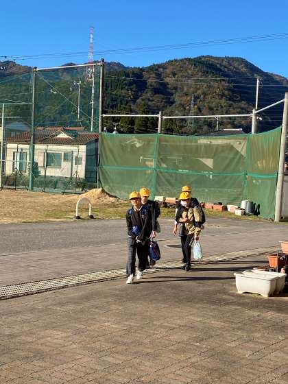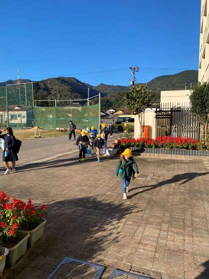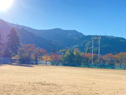 校庭の桜はすっかり紅くなっています。周りの山々の紅葉も進んできました。