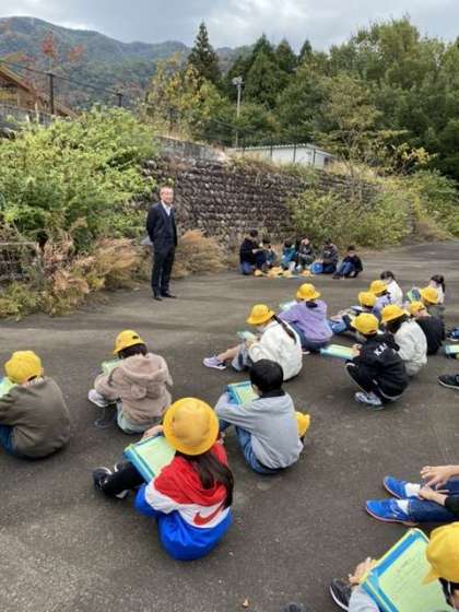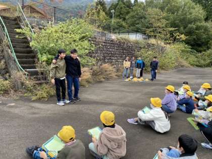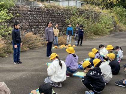 楡原小学校跡地、今の楡原保育所にきました。6年生から劇を取り入れたわかりやすい説明がありました。
