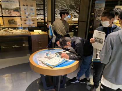 富山科学博物館にきました。富山市の航空写真を見て神通碧を探していました。