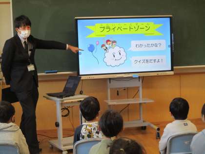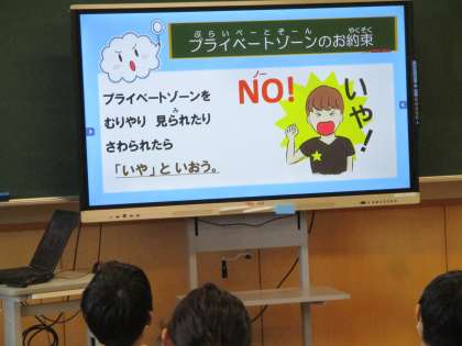 今日は、富山県警察少年サポートセンターの方をお呼びし、「プライベートゾーン」について教えていただきました。プライベートゾーンの約束をしっかりと守って生活していきたいと思います。