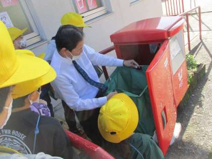 今日は、生活科「まちたんけん」に行ってきました。地域の方々からたくさんのことを教えてもらいました。実際にはしごを下ろしてくれたり、ポストの中を見せてくれたりしていただきました。ありがとうございました。