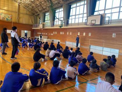 体育館に避難した後、保護者への引き渡しを想定して地区別に整列しました。