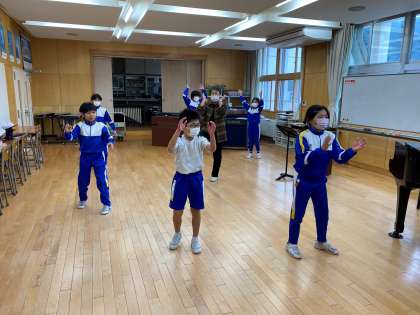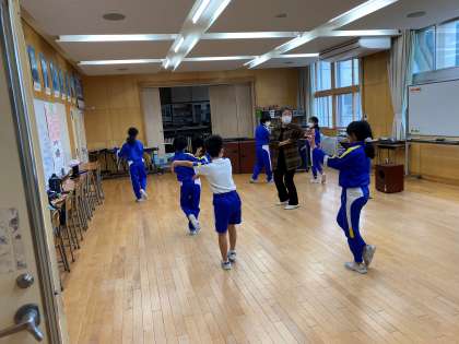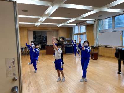 日本の音楽では、「こきりこ」や「おわら」を踊りました。