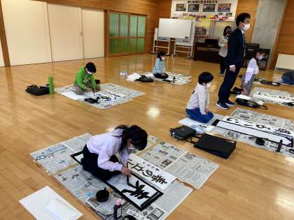 2限は、3・4年生の書き初めの練習をみていただきました。
