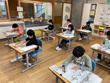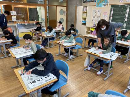 3限は、1・2年生の外部講師の先生の書写指導でした。
