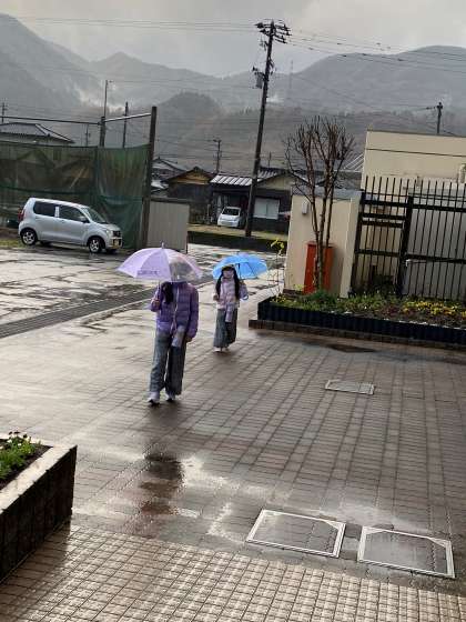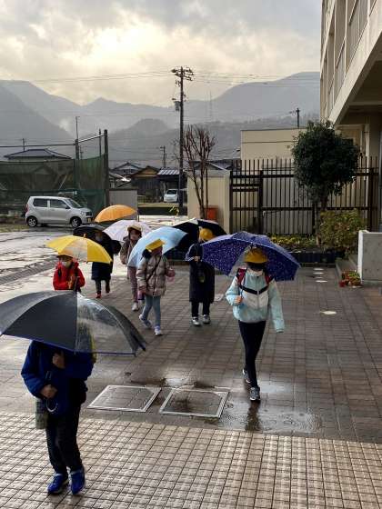今日は、2年生がまち探検に出かけます。雨がやむといいですね。