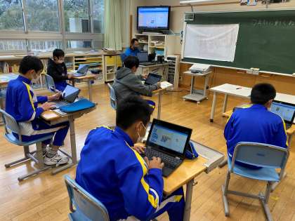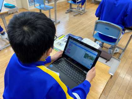 プログラミングで、「ネコを正方形にそって動かす」ことに挑戦しています。