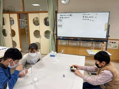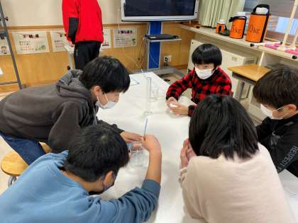 12月16日(金) 5年理科「もののとけ方」 公開日 2022/12/16 更新日 2022/12/16 5年生の部屋 食塩を水に溶かしています。決まった水の量にどれだけの食塩が溶けるのか、実験で確かめています。