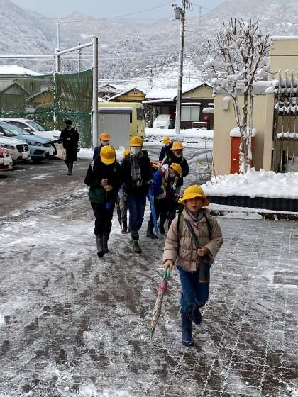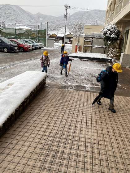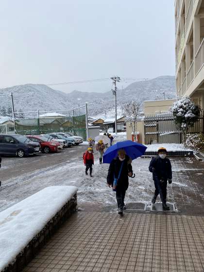 寒いです。でも、子供たちは元気に楽しそうに登校してきました。
