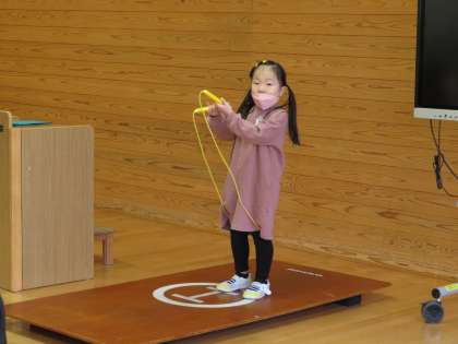 また、2学期に頑張ったことの発表では、1年生が縄跳びを3、4年生は美しい歌声を披露しました。
