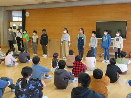 また、2学期に頑張ったことの発表では、1年生が縄跳びを3、4年生は美しい歌声を披露しました。