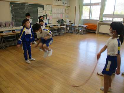 1/12 2年生 休み時間の様子 公開日 2023/01/12 更新日 2023/01/12 2年生の部屋 休み時間に8の字跳びの練習に取り組んでいます。声を掛け合いながら縄跳び大会に向けて練習しています。