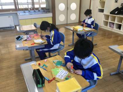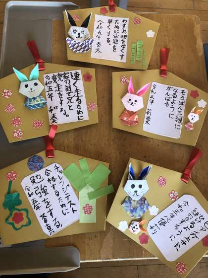 1月12日(木) 4年生 書写 公開日 2023/01/12 更新日 2023/01/12 4年生の部屋 新年の決意を絵馬に書きました。 用紙に合った文字の大きさや、配置にも気を付けて、ていねいに楽しんで書いていました。