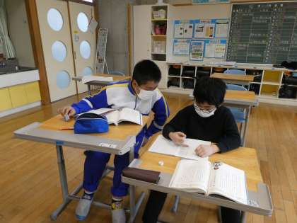 6年生は、国語科の学習でペア活動を行い、自分の考えを深めたり広めたりする変化を感じました。