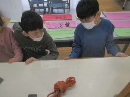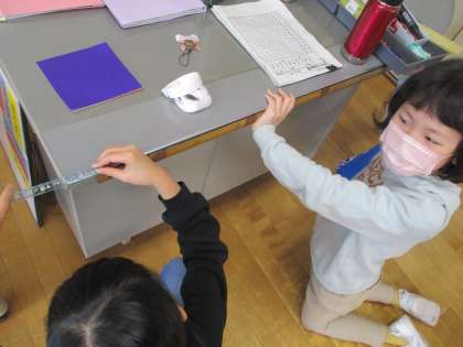 算数の長いものの長さの学習で、「1mだと思うものの長さを測ろう」に取り組みました。子供達は、長さを予想し、「おしい!」「ちょっと長い」「ぴったりだ!」と楽しみながら学習に取り組みました。