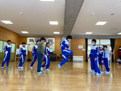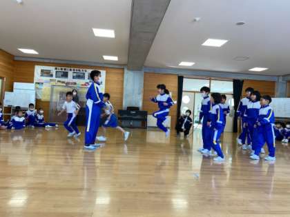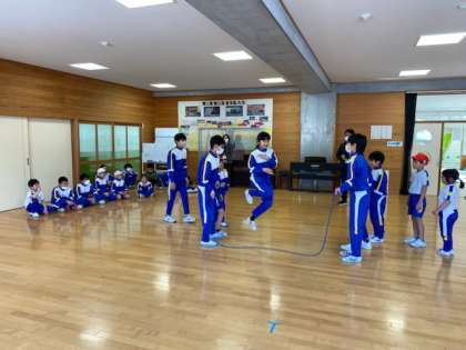 今日は、なわとび大会の団体戦でした。縦割りグループで8の字跳びを行います。