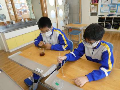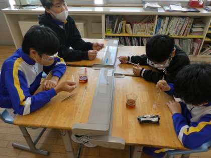理科の学習では、自分が性質を知りたい身近な水溶液を持ち寄り、調べるなど